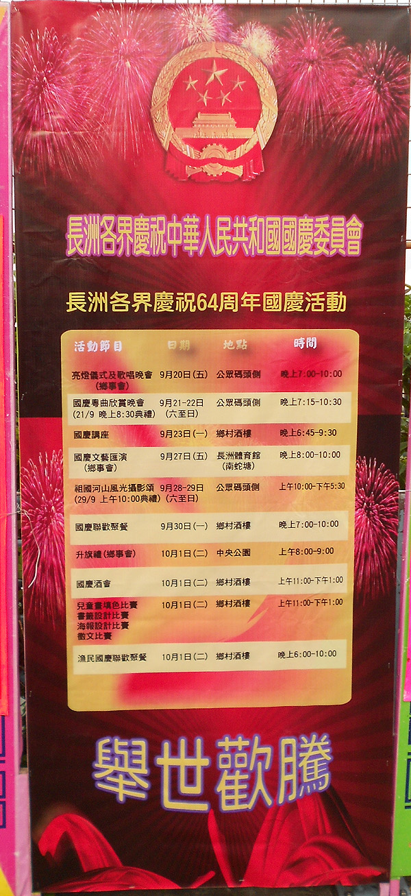 時間: 8月14日 晚上 8:00 地點: 長洲鄉事委員會會議廳 |